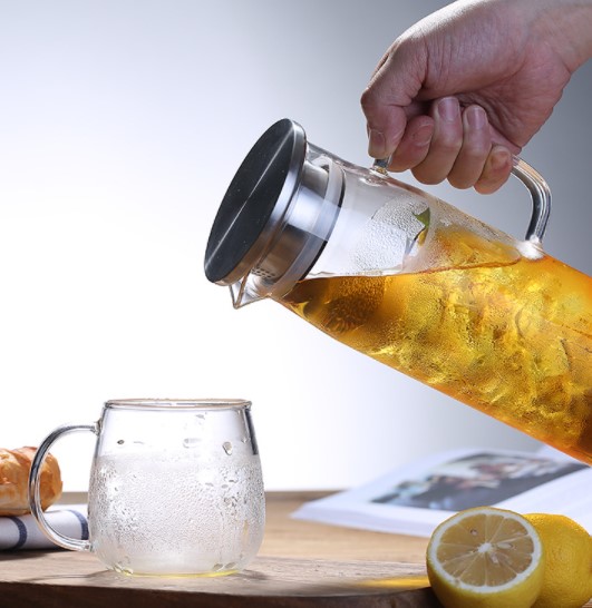 有柄玻璃水瓶 - 連不銹鋼蓋
